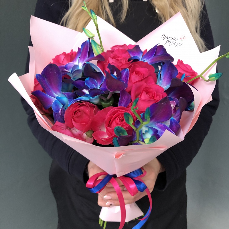 Орхидеи дендробиумы Блю и розовая роза (6+9) арт. 12119 (2)