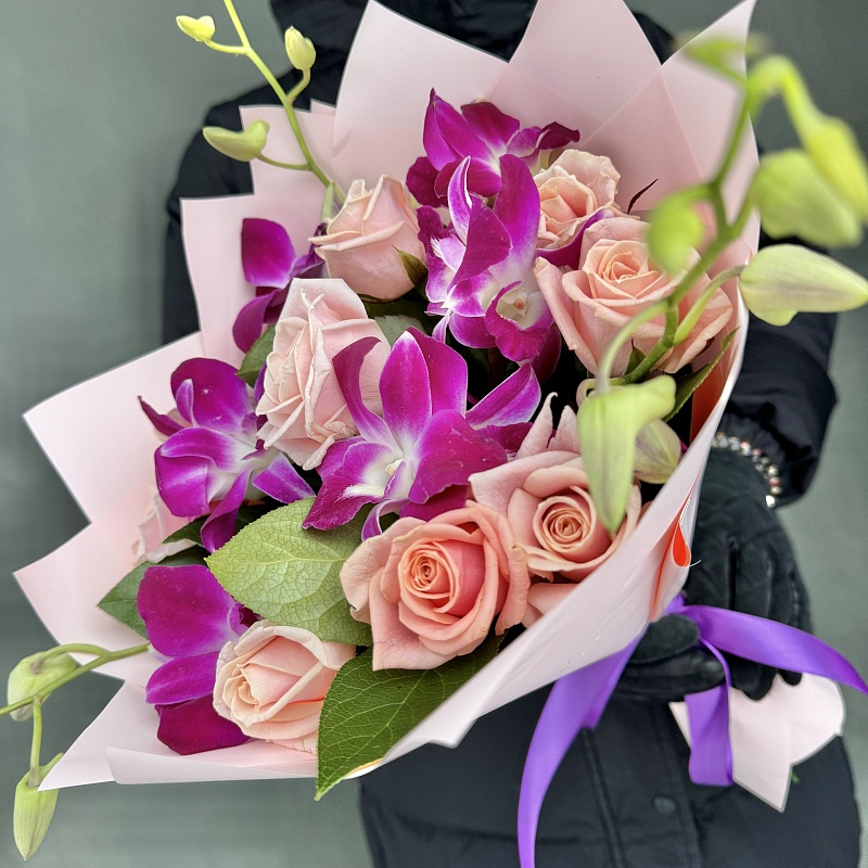 Орхидеи дендробиумы Соня и розовая роза (6+9) арт. 13635 st nhi npo kr ak: