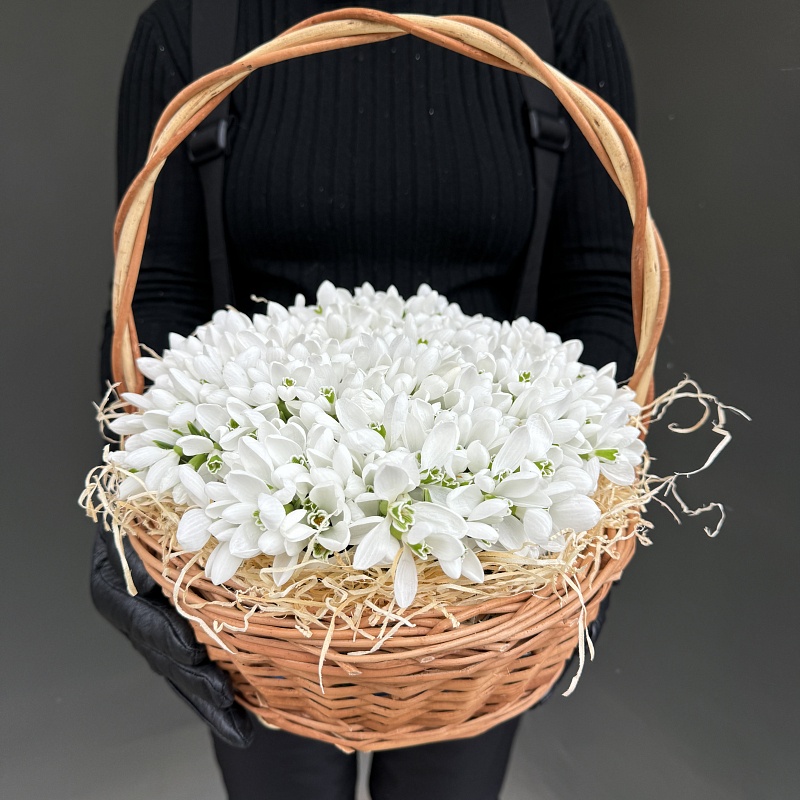 Подснежники 1001 шт в корзинке 30х30см, h=18см арт. 13653 - Просто роза ру 13653: