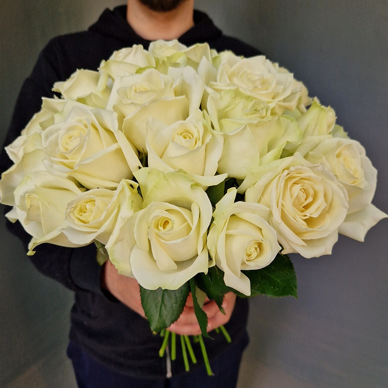 Розы Медиум 25 шт белые Валентина 40 см арт. 12012: