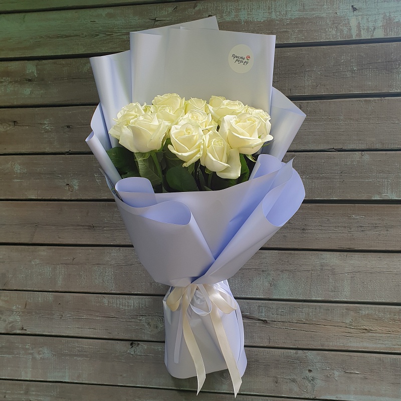 Розы Премиум 15 шт белые высота 50 см в голубой упаковке - Просто роза ру