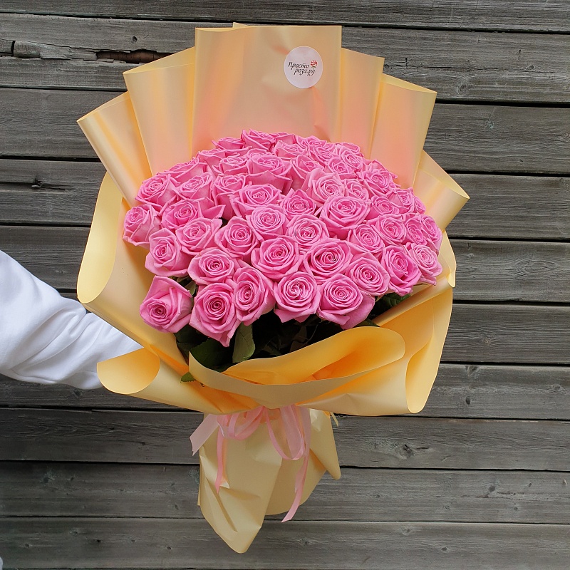 Розы Премиум 51 шт розовые высота 50 см в кремовой упаковке - Просто роза ру: